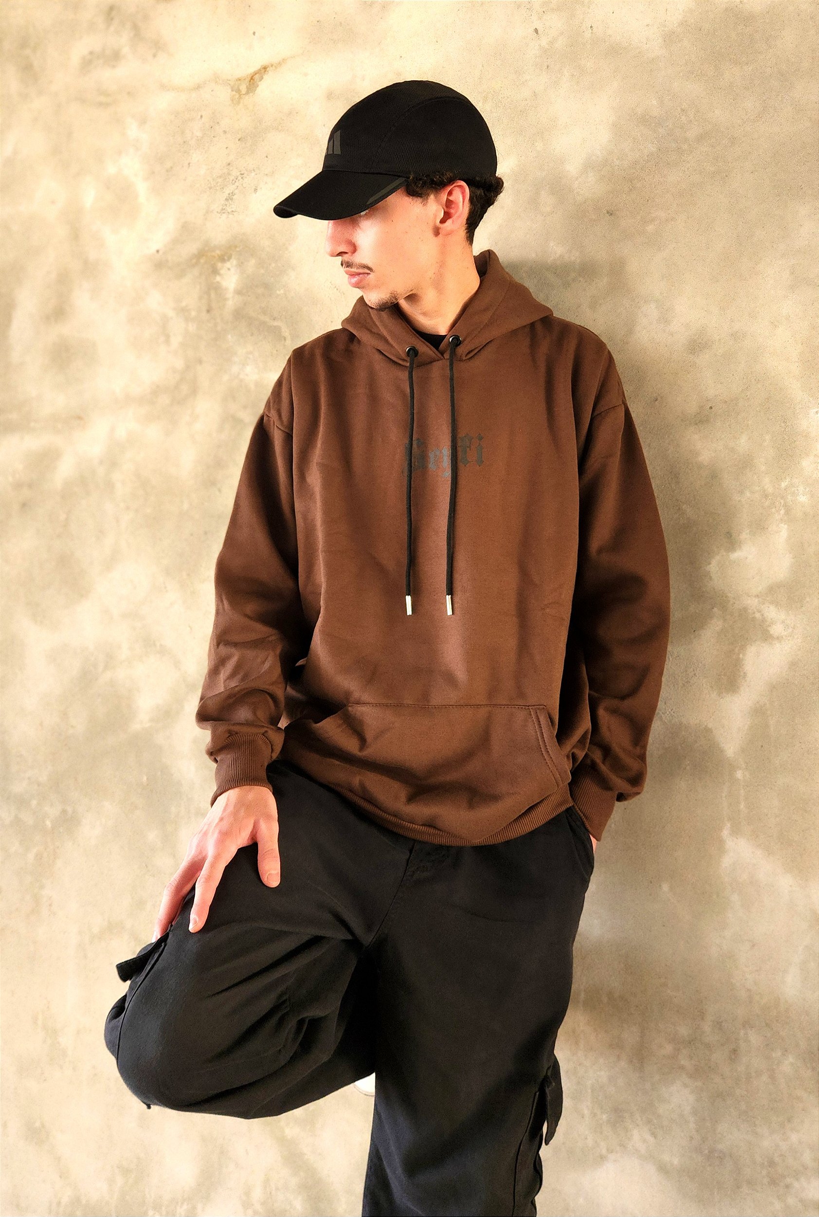 Moletom Canguru 2 Cabos estampa LOGO 1 - Marrom.